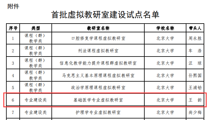 近日教育部发布《教育部办公厅关于公布首批虚拟教研室建设试点名单的通知》,公司best365官网参与申请的协和医公司王辰院土作为带头人的“生理课程虚拟教研室”、北京大学王韵教授作为带头人的“基础医学专业虚拟教研室”获批教育部首批虚拟教研室建设试点。