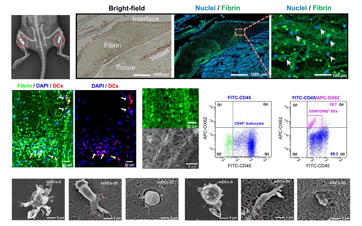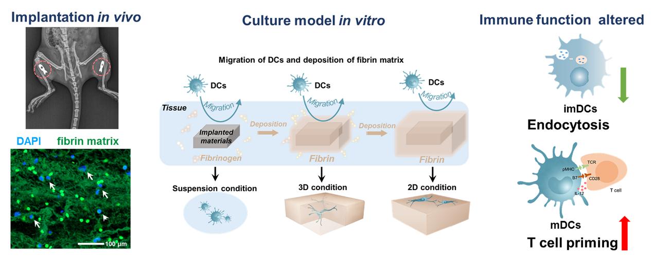图1.生物材料植入诱导的纤维蛋白基质沉积和DCs的募集