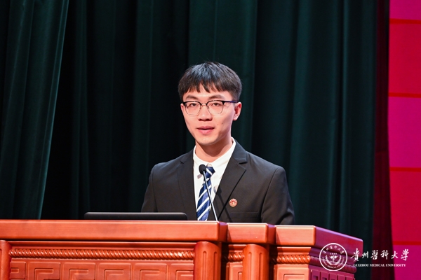 “协和班”2022级员工代表赵杨发言,他表示,作为新时代的“协和人”“贵医人”,必将承继协和基因,传承协和传统,做一粒努力向上的协和“好种子”,潜心钻研求上进,勇攀医技最高峰,用扎实的医学知识、技能守护好人民群众身心健康。