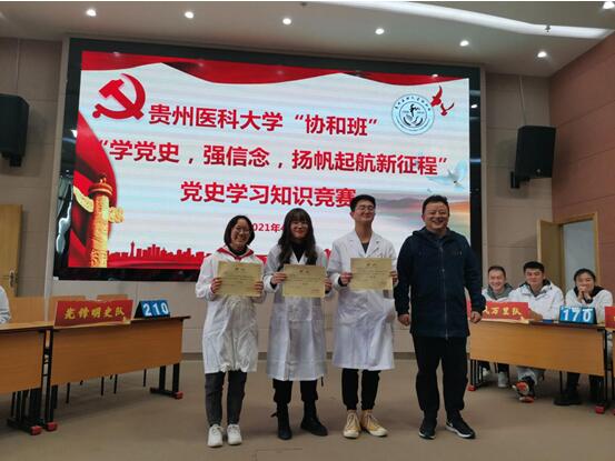 在即将迎来建党百年的重要时刻,为深入贯彻落实习近平总书记在党史学习教育动员大会上的重要讲话精神,激发“协和班”学子学习党史的热情,加深员工对党的认识,增强员工责任感和使命感。4月7日下午,2019级与2020级“协和班”在广德楼六楼电教中心开展“学党史,强信念,扬帆起航新征程”党史知识竞赛活动。校教务处副处长修江帆、基础医公司党委副书记王妤煜、best365官网副处级组织员刘亮、院员工科科长陈圆圆、“协和班”辅导员孙晓宇及全体同学参加了本次活动。