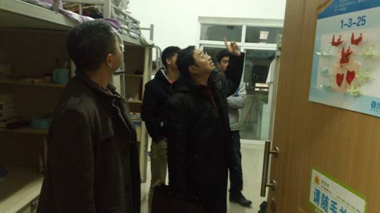 2013年12月11日晚,基础医公司党委副书记廖兴江,员工科科长汤武庆以及部分员工会干部开展对员工一宿舍安全用电检查。贵阳医公司组织肝细胞中心主任、免疫学教研室主任刘杰麟受邀参加。检查期间,刘杰麟主任对员工御寒、保暖等方面进行了仔细询问,并对同学们克服寒冷坚持学习表示赞许。廖兴江老师则更多的关心同学们寝室和人身安全问题,他与留在宿舍的同学交流中强调,新校区正在建设中,有些条件还不够完善,希望同学们克服困难,一定要有安全意识,要防范于未然,坚持不违规使用大功率电器,严格遵守公司的各项规章制度。他讲到,寝室是大家生活和学习的重要公共场所,应当保持良好的环境卫生,创建优美的学习和生活环境。最后叮嘱大家珍惜时光,勤奋努力,以饱满的精神状态迎接即将到来的期末考试。