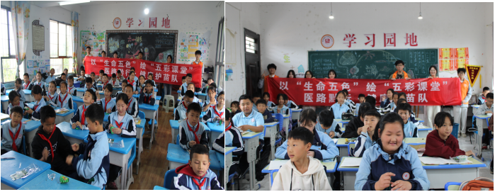 在全国科普教育周之际,best365官网“医教黔行 健康护苗”志愿服务队联合药公司志愿服务团队,于5月28日走进马场镇中心小学,以“健康中国・科普赋能”为主题,以生命五色绘五彩课堂,构建沉浸式科普场景,为200余名师生送去“科普礼包”。