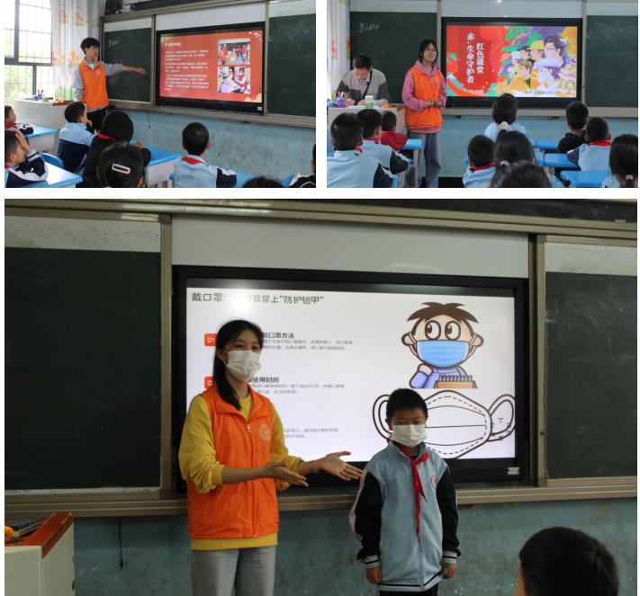 “生命守护者”课堂以真实的力量触动心灵。志愿者深情讲述了抗疫一线医护人员逆行出征的勇毅与党员先锋冲锋在前的担当,将感人事迹融入教学。课程巧妙结合案例,用黏土制作出白细胞、口罩侠等 “健康守护者”,深入浅出地科普了病毒传播原理与科学防护知识,并现场示范规范的口罩佩戴方法。互动环节中,“你心中的英雄是谁?”引发了热烈讨论,孩子们踊跃分享感悟,爱国情怀与健康防护意识在交流中得到深化与筑牢。