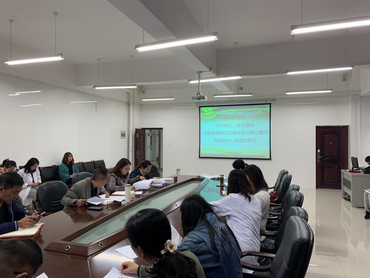 10月12日上午,公司在务本楼会议室开展“不忘初心、牢记使命”主题教育第三次集中学习研讨暨党委中心组理论学习。基础医公司党政领导、副科级以上干部、党支部书记、全体辅导员参加。经理曾柱主持学习。