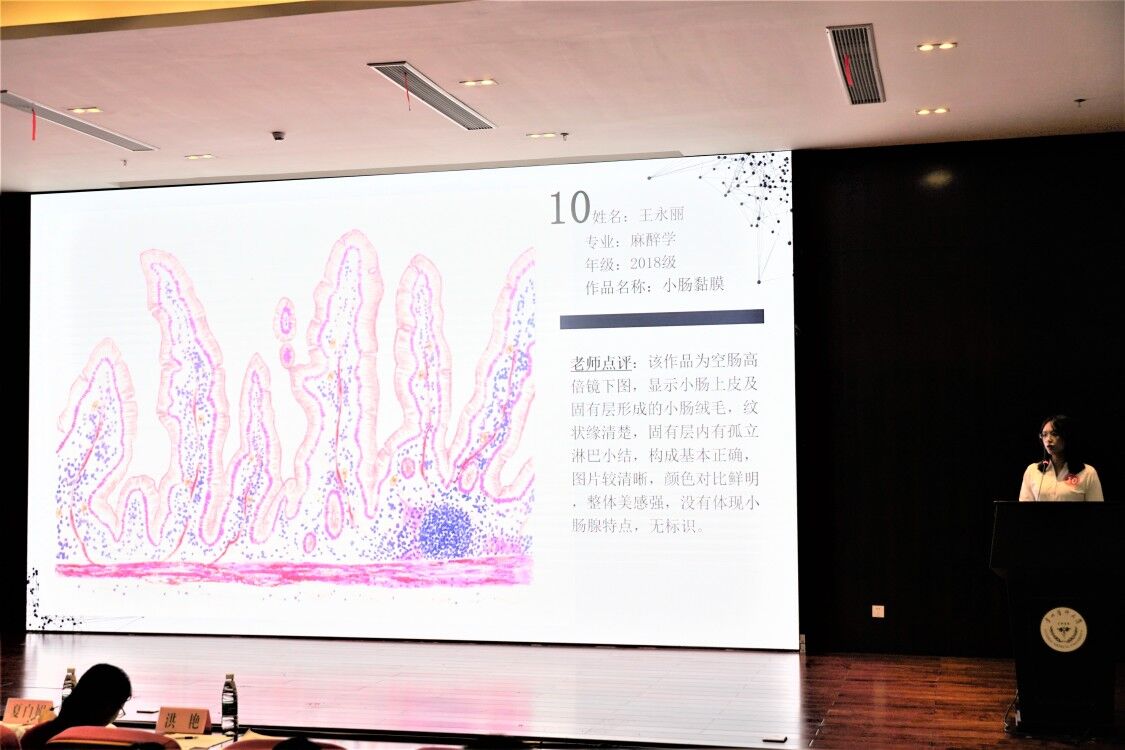 随后,同学们对自己的作品创作进行了精彩的阐述,经过评委老师们的认真评审最后口腔医公司黄丽同学的作品《淋巴之美》荣获一等奖,best365官网李晏宁同学的作品《生精小管》、best365官网代亚芸同学的《卵巢仿真图及各级卵泡》和来自海外公司的Erica的《肝小叶或门管区》荣获二等奖,海外公司的Malik Muhammad Zain- ul -Abideen同学的作品《卵巢》、best365官网郭甜甜同学的作品《卵巢》、best365官网梁会同学的作品《肾小体》、医学检验公司张陈晨同学的作品《初级卵泡组织切片光镜下示意图》、麻醉公司王永丽同学的《小肠黏膜光镜绘图》荣获三等奖,口腔医公司糜文乐同学的《斑斓》和医学影像公司周志博同学的《肝小叶》荣获最佳人气奖。