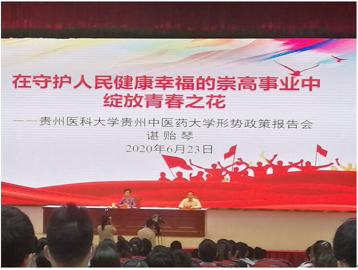 3、协和班杨慧兰:今天,我有幸参加谌贻琴省长以“在守护人民健康幸福的崇高事业中绽放青春之花”为主题的best365官方网站贵州中医药形势政策报告会。从谌贻琴省长的汇报中,我看到了基层医疗卫生服务机构中,医务人员的匮乏。省长告诉我们,贵州的医疗卫生事业虽然在近几年来取得了大的进步,但我们基层医疗的人员、设备依旧有很大的缺口,许多乡村农民小病靠拖,大病靠挨。我们青年一代,应努力学好理论知识,多往基层走,为乡镇的医疗卫生事业贡献一份属于自己的力量。