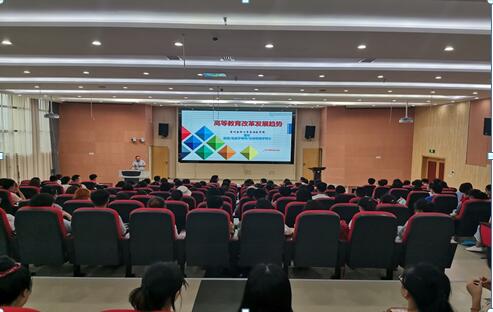 6月30日下午,在南校区一教六楼电教中心会议室,基础医公司党委委员、经理曾柱为员工上了一堂关于“高等教育改革发展趋势”的思政课。来自于2018、2019级的研究生及2018级、2019级临床医学专业、眼视光医学、医学实验技术、基础医学的160名同学聆听了这堂思政课。