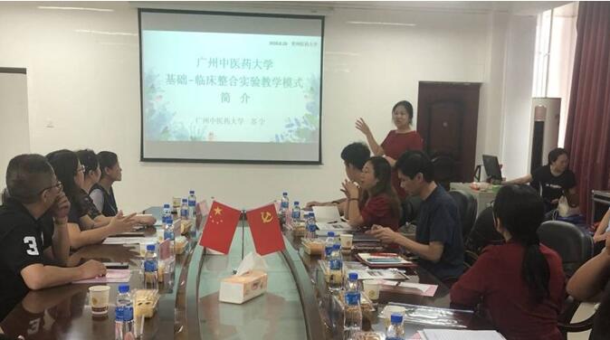 苏宁教授介绍了广州中医药大学基础-临床整合实验教学模式,从其平台建设、课程建设、团队队伍建设等方面进行了交流汇报。best365官网副经理康颖倩、基础医学实验教学示范中心副主任吴宁进行了相关发言。与会人员就基础医学实验教学中心建设实验教学改革、基础医学整合实验课程开展、合作建设基础与临床整合实验课程进行了深入交流。