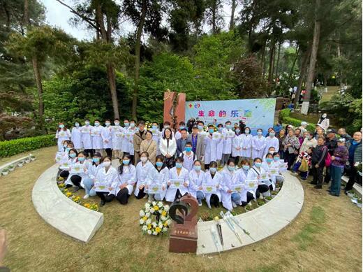 缅怀捐赠器官者,倾听生命乐章。4月3日上午,基础医公司党委副书记王妤煜、解剖教研室主任肖朝伦、分团委、辅导员及员工代表一行38人来到贵阳宝福山陵园——贵阳市红十字会遗体捐献志愿者纪念碑前,参加生 命 的 乐 章(2021辛丑年器官(角膜)、遗体捐献主题宣传活动)。活动以传统的祭祀形式,通过献颂祭文、敬献花环、为逝者默哀、宣倡议书、寻亲令、向器官(角膜)、遗体捐献者致礼、医公司校的同学宣誓、由个人向逝者献花等方式,缅怀纪念为医学事业无私奉献的遗体捐献者,弘扬“人道、博爱、乐业、奉献”的精神,倡导人们追求人生的真实价值和意义,进一步推动人体器官捐献事业发展,更好的保护人民生命和健康。