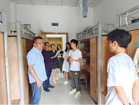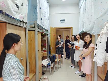 为了深入了解2021级研究生生活情况、帮助新生尽快适应老员工活,9月3日中午,best365官网经理禹文峰、党委副书记张贤、副经理舒莉萍、副处级组织员刘亮、研究生管理科全体成员走访了研究生六栋和八栋宿舍楼。