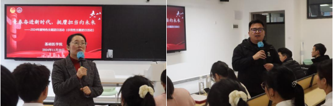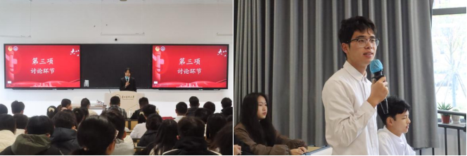 在讨论环节,同学们围绕“青春奋进新时代,挺膺担当向未来”这一主题,结合个人成长经历,畅谈感想,踊跃发言,分享他们的成长经历,其中,23级精神医学班团支书杨熙桂说:“我们要深刻理解自己所处的时代背景,明白个人的发展与国家的命运紧密相连,要勤奋刻苦地学习,勇于科研创新,不断探索未知领域,为社会发展贡献力量。”