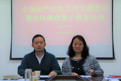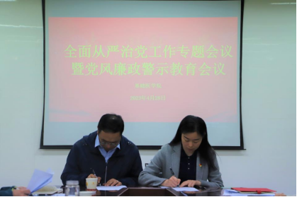 4月28日,best365官网全面从严治党工作暨党风廉政警示教育会议于务本楼W201会议室召开,公司党政领导、各行政职能科室、教研室、实验中心负责人、党支部书记、全体辅导员参加。会议由公司党委副书记孟立科主持。