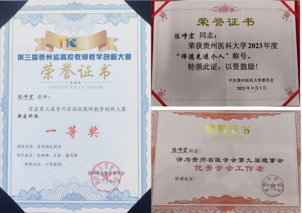 贵州省普通高等公司病原生物学特色重点实验室主任陈峥宏教授团队在第三届贵州省高校教师教学创新大赛新医科组中荣获一等奖。该团队由陈峥宏教授带领,成员包括张峥嵘、王菲和綦廷娜。此外,陈峥宏教授还荣获best365官方网站2023年度“师德先进个人”称号,并被评为贵州省医学会第九届理事会优秀学会工作者。