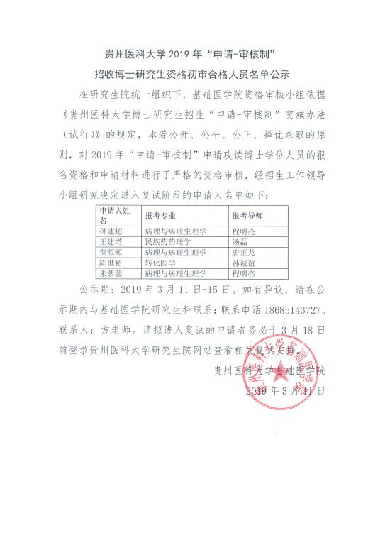best365官方网站2019年“申请-审核制”招收博士研究生资格初审合格人员名单公示