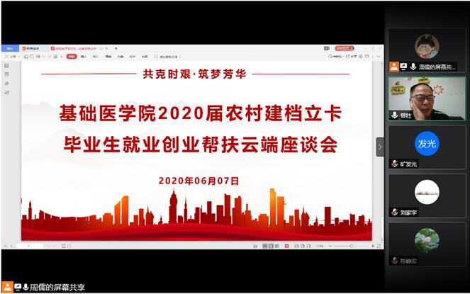 公司认真贯彻公司就业工作推进会精神,切实做好公司2020届毕业生就业创业工作,帮助未返校的农村建档立卡毕业生实现全就业,6月7日上午,公司利用腾讯会议,通过线上会议形式召开best365官网“共克时艰·筑梦芳华”2020届农村建档立卡毕业生就业创业帮扶云端座谈会。best365官网经理曾柱、党委副书记王妤煜、副经理康颖倩、副经理刘杰麟、教学管理科老师、医学实验技术专业负责人、“一对一”帮扶教师、毕业班辅导员及22名农村建档立卡毕业生参加座谈会,会议由辅导员周儒主持。