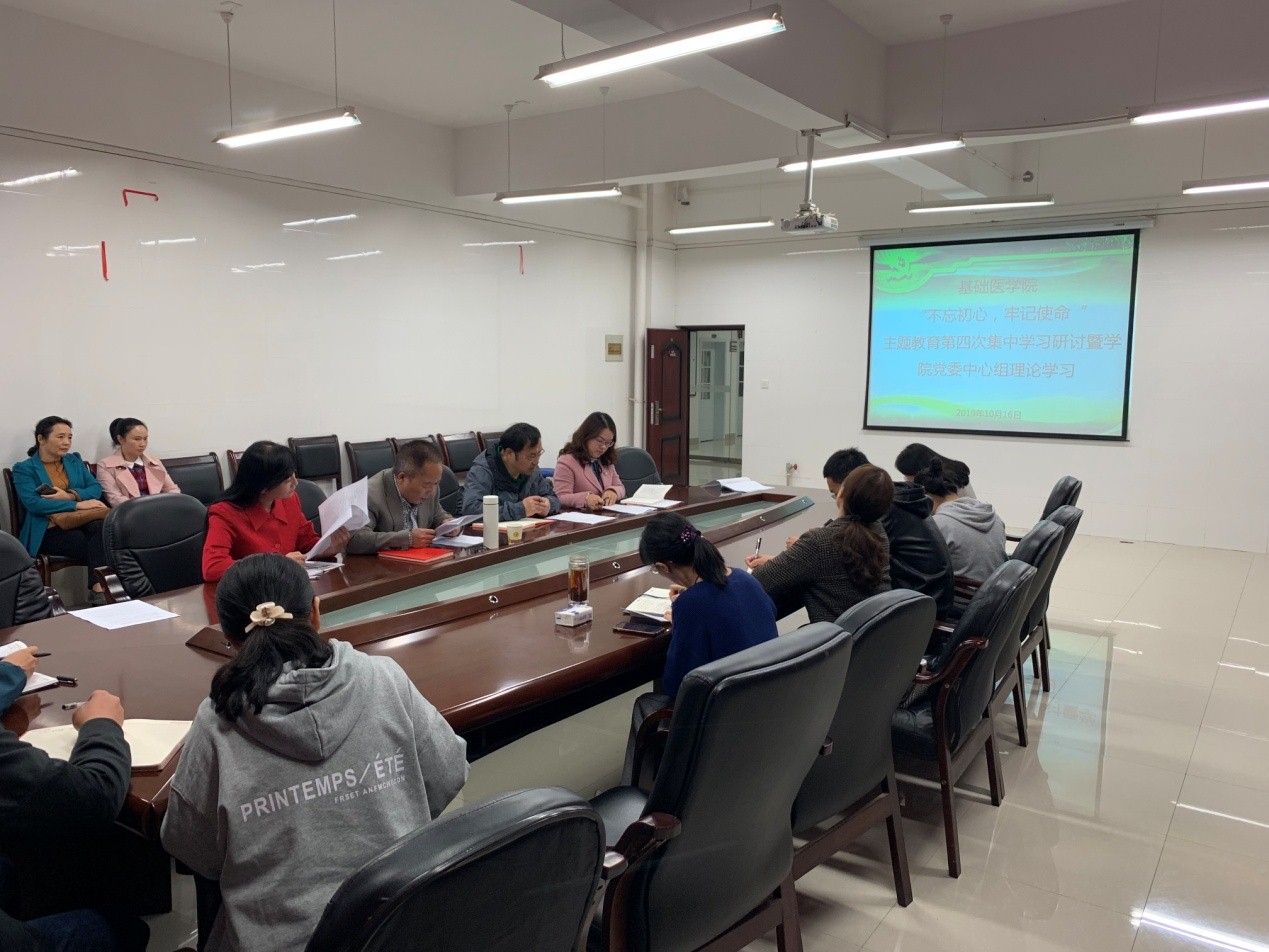 10月16日上午,公司在务本楼会议室开展“不忘初心、牢记使命”主题教育第四次集中学习研讨暨党委中心组理论学习。基础医公司党政领导、副科级以上干部、党支部书记、全体辅导员参加。经理曾柱主持学习。