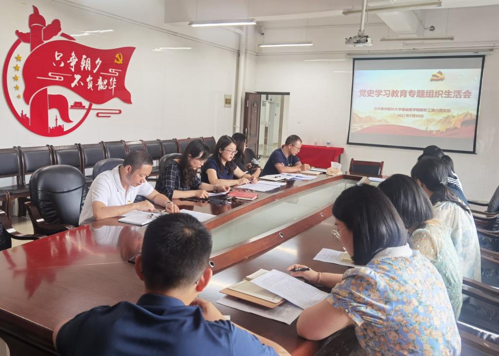 7月20日上午,基础医公司党政领导以普通党员身份参加所在党支部党史学习教育专题组织生活会。公司党史学习教育第一督导组成员、党委组织部副部长蔡炼到会指导,会议由支部书记舒莲主持。