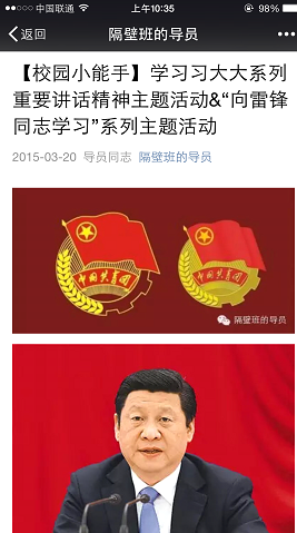2015年3月份,best365官网分团委深刻贯彻习近平总书记系列重要讲话精神,在全院29个班级内分别开展“四进四信”主题班会;还通过新媒体手段推动学习习近平总书记系列重要讲话精神进支部、进社团、进网络。让员工们学会: